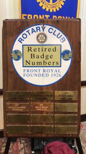Only five numbered name badges have been honored with ‘retirement’ over 81 years of history at the Rotary Club of Front Royal.