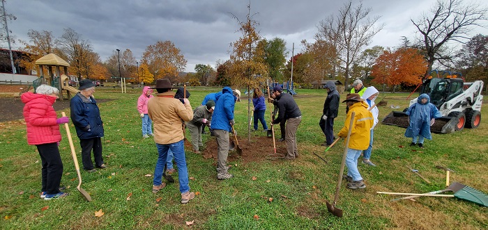 On Saturday, November 13th, community members from Front Royal came together to do their part in helping our town achieve its Tree City USA designation by planting six Willow Oaks at the Gertrude E. Miller Community Park. The tree planting was made possible through leadership from the Warren County Democratic Committee (WCDC), in collaboration with the Town of Front Royal Public Works, Warren County Parks & Rec, the Front Royal/Warren County Tree Stewards, and Town Arborist, Jim Osborn. Funding for the trees was procured by WCDC through the Virginia Department of Forestry’s (VDOF) Virginia Trees for Clean Water grant.