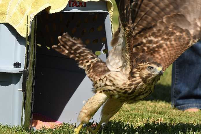 And the bird, hospitalized at the Center in Boyce since June 24, made it a quick getaway, streaking to the top of a nearby tree in just a few seconds. The crowd applauded, visibly exhaling then cheering for the raptor as it ruffled its feathers before disappearing over the tree line.