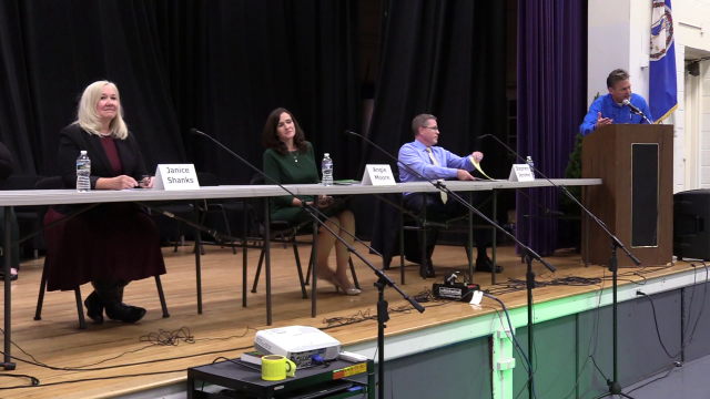 Ray Bramble was the moderator at the Candidate Forum for Warren County Clerk of the Court. Left to right: Janice Shanks, Angie Moore and Stephen Jerome. Photo and video by Mark Williams, Royal Examiner.