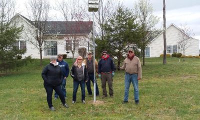 Former HOA board member Karl Snyder guided the new volunteer team through the set-up of 10 bird condominiums on Autumn Glen common ground in Stephens...