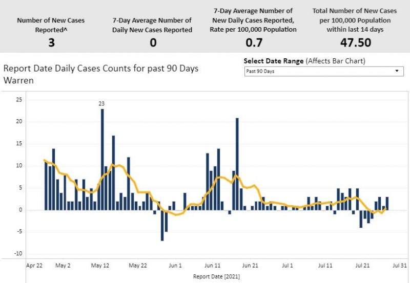 The CDC has the level of Community Transmission in Warren County as high.
