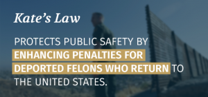 Kate’s Law is named in memory and in honor of Kate Steinle. Two years ago, Kate was murdered in San Francisco by a criminal alien who had been removed from the United States and had returned at least five times. Kate’s Law enhances the current maximum sentences for illegal reentry into the U.S., serving as a strong deterrent for deported felons seeking to come back to the United States. These bills are a good step toward improving our immigration laws, and I call on the Senate to pass them without delay.
