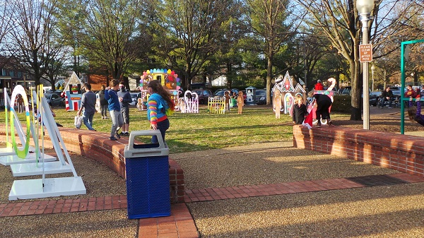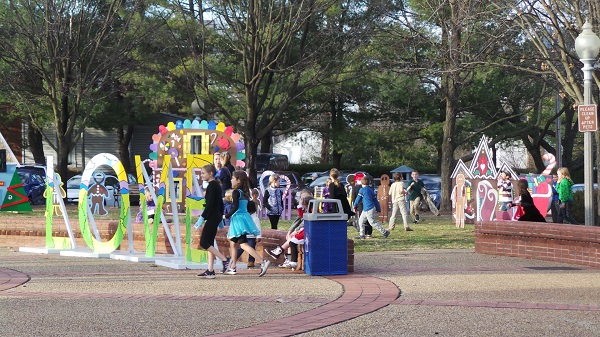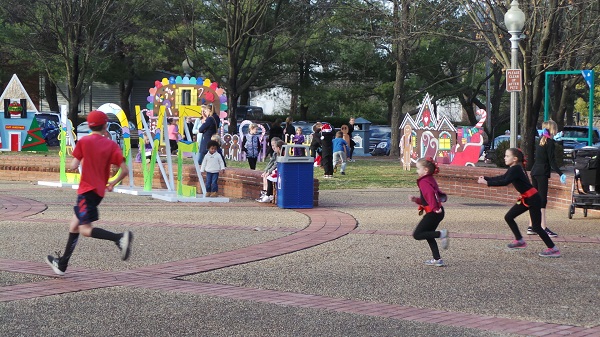 Above, Will and Nina Huck in their Father and Mother Christmas guise check the action out at Saturday’s ‘Christmas on Main’. Below, there was room to run and let some pent-up energy out among the Village Commons Gingerbread House village and Gazebo area.