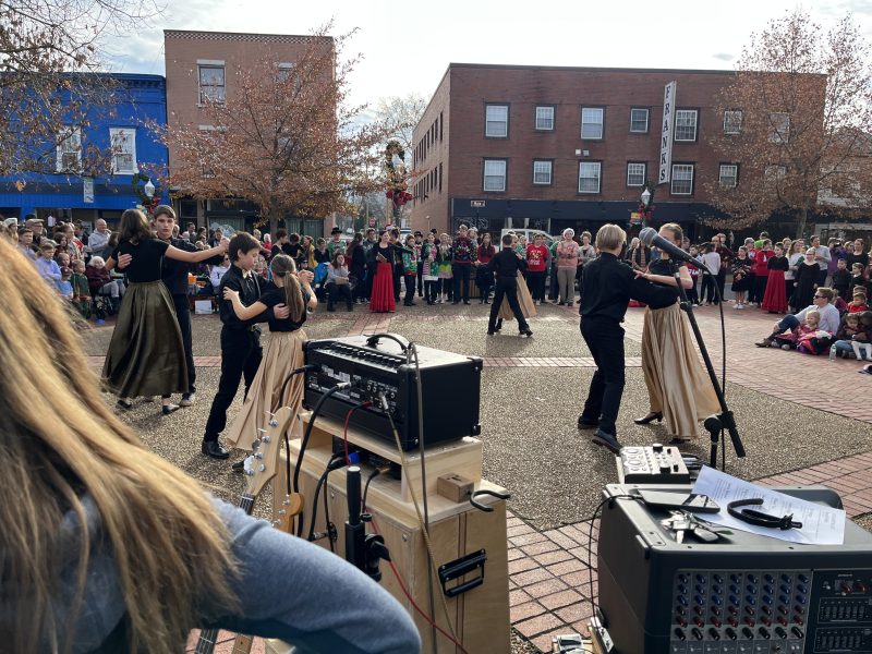 Students from Jig N Jive at 529 East Main Street shared their talent with a crowd of revelers enjoying “Christmas on Main,” a longtime, yearly tradition for Front Royal, featuring many venues, including food, other merchandise, and face painting. It culminates in a parade and caps off with the Christmas tree lighting at the Gazebo in the Village Commons Park area. So, it was a still unlighted tree standing sentinel over the scene, as the young people infected their onlookers with their Christmas cheer as they performed numbers in the style of Irish, swing, and ballroom dance.