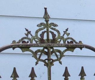 Detail of the fence with a distinctive gate ornamentation that provided the key to the manufacturer and thus its age. Courtesy Mark Gunderman.