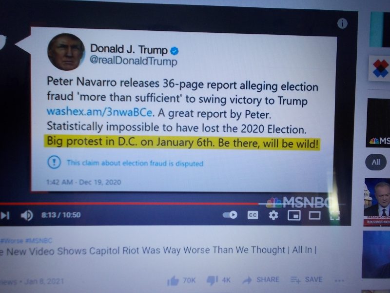 But we have not heard specifics on the Internet sources of those rumors and articles. For if we had, one might wonder if they would have been from the same right-wing blogs that have been reported rallying neo-fascist, Q-Anon, and racist elements of the extreme American right-wing toward D.C. for the pro-Trump rally and move against the January 6th certification of the Electoral College count by Congress for weeks.