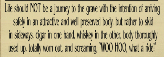 I tried to be normal but the alternative lifestyle of being a normal person and driving back and forth to work amongst the masses was not appealing either, so what do you do? If you hold on too tight, you’ll have a dismal existence, so you may as well come to grips with your mortality and just go for it. It’s not the years in your life but the life in your years I keep telling myself. Everyone you know will cease to exist one day soon, so enjoy the ride while you can. That is the reality for all of us.