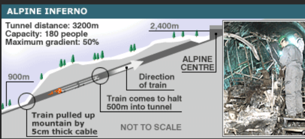 One last story regarding the gauntlet of life. I was introduced to members of the Kaiserslautern Ski Club over Veterans Day weekend in the year 2000. We were all there to go skiing on a glacier in the little town of Kaprun, Austria – one of few places in Europe with skiing that early in the season. On Friday, the 10th of November I met a father and his son who were members of the ski club. We were playing water polo in the lodge pool that evening. They were celebrating his son’s birthday. His mother and other siblings were unable to come along. The following morning (November 11th), we were in a cue boarding the monorail-like train for an ascent into the mountain tunnel to the glacier at the top. At the last moment, my shoestring came untied and I stopped to tie it. That 10 second pause caused me to miss the train. They were the last ones on the train as it reached capacity, and I was forced to wait for a follow-on train.