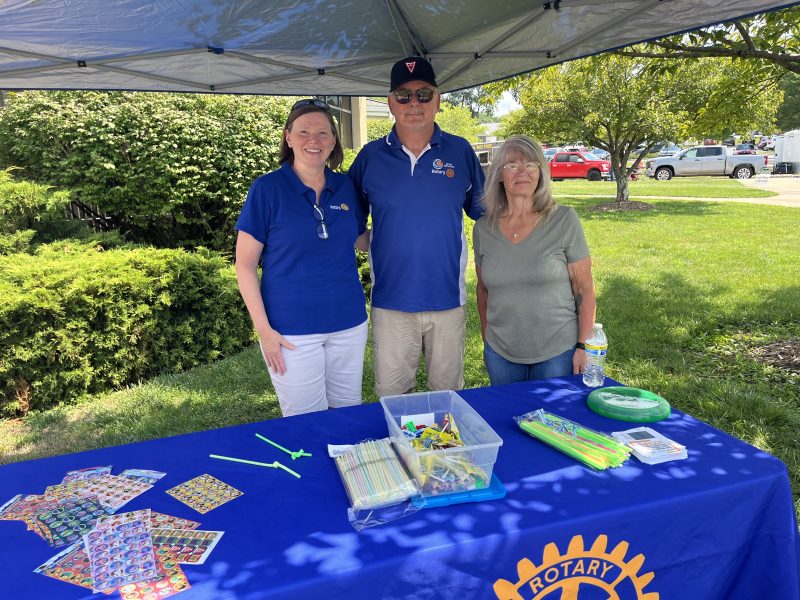 The Rotary Club at its Front Royal and Warren County levels are both represented at Community Fun Day. (L) Lynn Downs and (R) Lori Glascock represent the Front Royal Rotary; in the middle, Councilman Glenn Wood represents the Warren County Rotary.