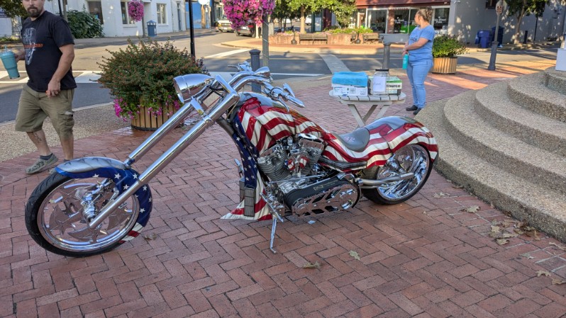 Another reminder of that legacy stood parked nearby: a striking 9/11 tribute motorcycle brought by Ed Cook, a longtime community member. The custom bike symbolizes the spirit of patriotism and the determination to keep those memories alive.