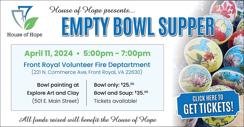 The discussion transitions to the upcoming Empty Bowl Supper, an annual fundraiser to support the House of Hope, held this year at the Front Royal Volunteer Fire Department on April 11th from 5 to 7 p.m. This event, beloved by the community and long-standing to the point of its origins being somewhat of a mystery, not only serves as a major fundraiser but also as a symbol of the community’s collective effort to address local needs. With a lineup of local businesses contributing, from Oak & Ollie’s much-lauded sourdough bread to diverse soups from establishments like the Apple House and Red Light Culinary, the event promises a feast for a cause.