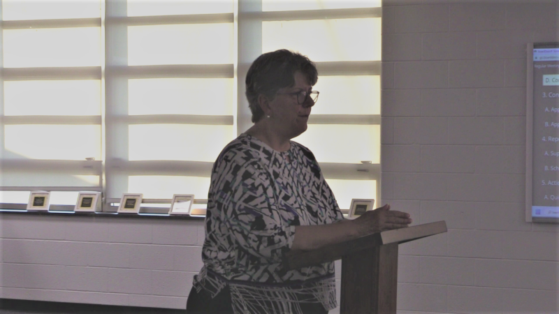 Jane Baker (above), the retired principal at Blue Ridge Technical Center (BRTC), said the center has had cameras in classrooms for at least the last 15 years. “And when I say classrooms, they are in our labs, such as our automotive lab, our electricity lab, those types of classrooms, where students are using a lot of different equipment,” Baker told the board.