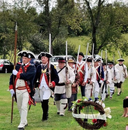 The ceremony included the combined color guard of the Colonel James Wood II (CJWII) and Sgt Maj John Champe (SMJC) Chapters for the Virginia Society SAR. The color guard was commanded by Brett Osborn (CJWII) and included Ken Bonner (SMJC), Sean Carrigan (CJWII), Paul Christensen (CJWII), Kelly Ford (CJWII), Doug Hall (CJWII), Dennis Permerter (CJWII), Marc Robinson (CJWII), Barry Schwoerer (SMJC), Mark Sink (CMJC), Richard Tyler (CJWII) and Charles Harbaugh, Mayor of Middletown.