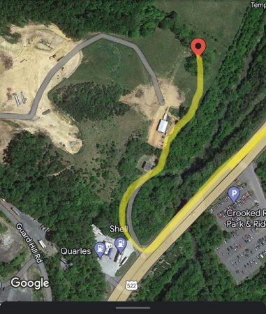Recently a group of local-history-minded citizens gathered to clean up what they believe to be a historically significant county cemetery they call “The Garrison-McKay Cemetery” from some of the grave site names discovered. The location is a bit north of Guard Hill Road and northwest across Route 522 North from the Crooked Run area park and ride as illustrated in the below graphic. The volunteer clean up was led by Joe Andrews and Sarah Saber, the latter who made Royal Examiner aware of the restoration project that was accomplished on Sunday, October 29. Here is some background on how the project evolved and what was found at the site.