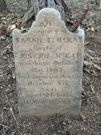 In memory of Sarah E. McKay wife of Joseph McKay was born October 31st 1803 and departed this life October 8th 1831 aged 27 Years, 11 Months and 23 days