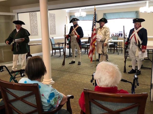 On September 17, 2020, the Colonel James Wood II Chapter of the Virginia Society Sons of the American Revolution gave a reading presentation to celebrate the birthday of the Constitution of the United States at Commonwealth Senior Living Facility in Front Royal.  Dale Corey, Brett Osborn, Chip Daniel and Art LaFlam provided an oversight of the birth of the Constitution and an overview of what the original document means.