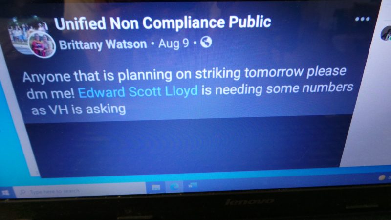 She also posted from a related group, “Unified Non Compliance Public”, that Lloyd appeared to be involved in, as well, as it focused on organizing “strikes” or demonstrations against Valley Health’s approaching September 7 deadline that its employees at least have a first vaccine dose to maintain their employment status.