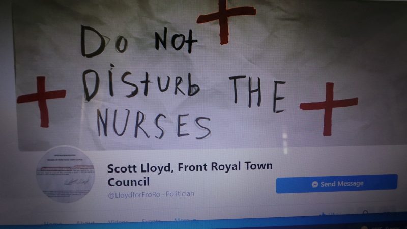 “Do you work for the people of Front Royal, or for Valley Health? It sounds to me like you’re the one with the conflict of interest. Remember, you work for the people, not the medical oligarchs … When the people of Front Royal vote to take out the trash, you will understand why you are out of a job,” Brad McDowell wrote, drawing a chiding from another commenter – “no they don’t (in response to McDowell’s assertion a majority of town and county citizens support Lloyd’s “Emergency Ordinances” against private sector vaccination mandates) and your comment about taking out the trash is ugly though not surprising,” Lissa Hubbard said in Thompson’s defense.
