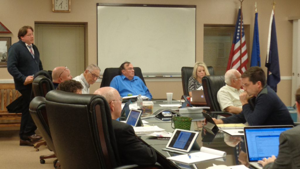 FRLP principal David Vazzana, yellow shirt, and project consultant Bill Barnett to his right, at the Dec. 4 work session.