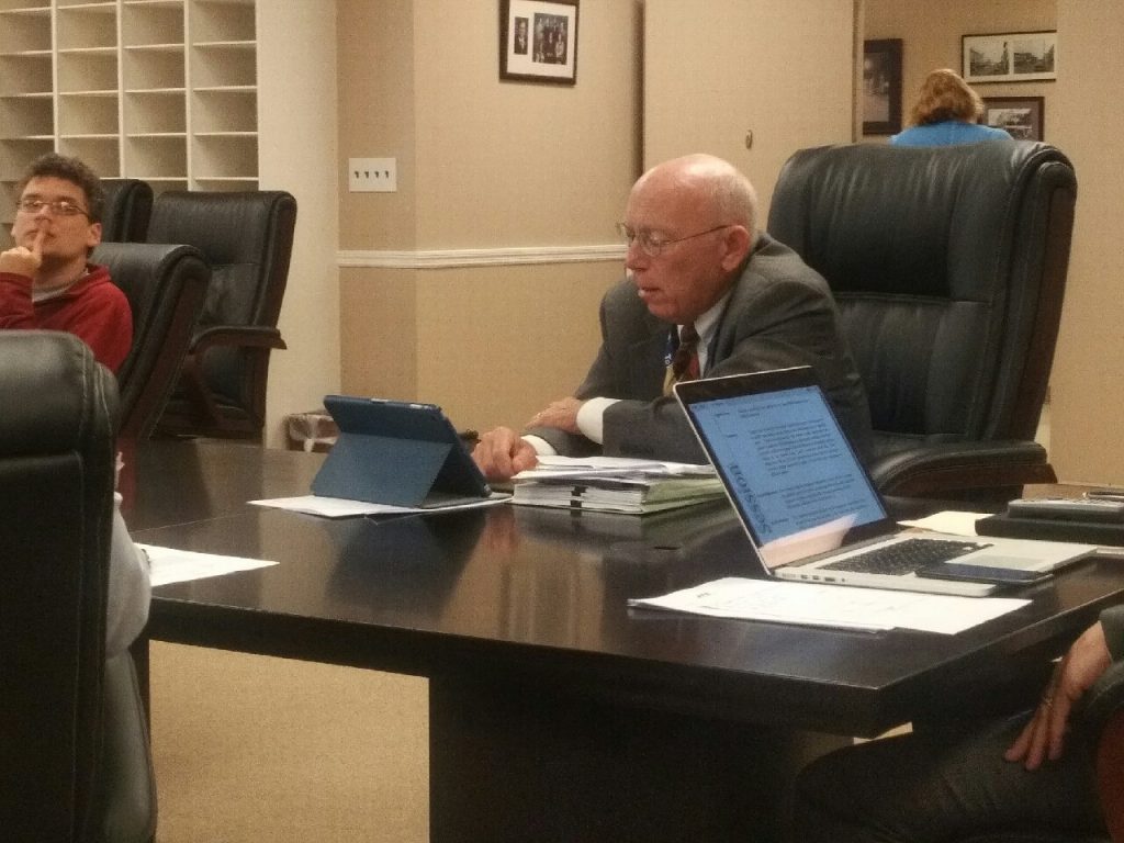 Front Royal Attorney Doug Napier is advising council on its options regarding appointed versus elected councilmen. To Napier’s right, Councilman John Connolly ponders what he’s hearing. Photo/Royal Examiner
