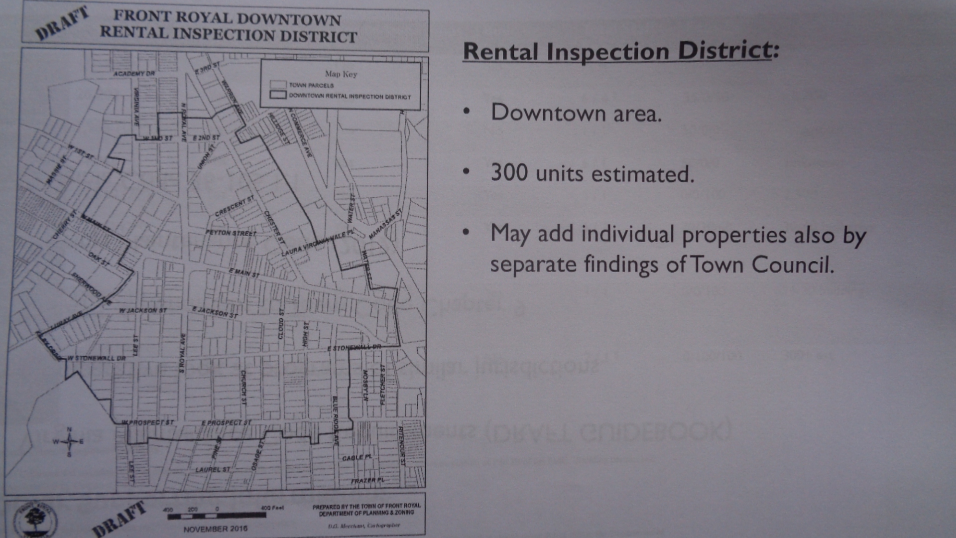 Front Royal’s mayor and town council continue to proceed cautiously toward instituting a property maintenance and rental inspection code. That caution appears fueled in part by the cost of supporting the program annually; as well as a desire to get it right so enforcement cannot be successfully challenged legally.