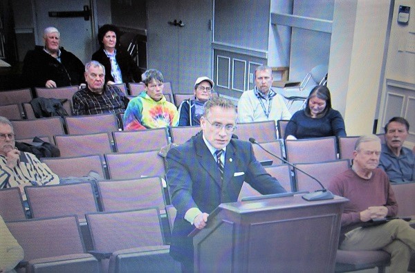 Citing a family history of involvement in town historical preservation, Amber Morris made the motion to uphold the BAR denial of the partial demolition permit for 131 E. Main St., also known as the old Murphy Theater building. Below, attorney David Silek cited a past family history of ownership of the building in arguing against demolition of any portion of the historic structure.