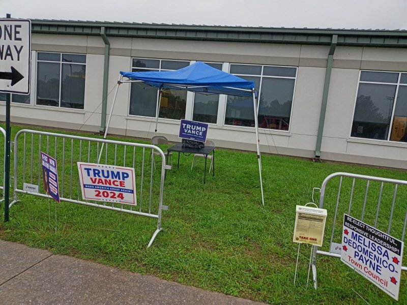 “The policy says that the area for the canopies will be designated by the county administration. So after talking to everybody out there, if they can cooperate and not harass the voters, then the registrar is now comfortable with them over on the grass side, where they are right now between the sidewalk and the building. If they start harassing the voters or arguing, then they’re going to come back out of there. So this is an attempt to protect the voters and keep everybody in harmony out there.”