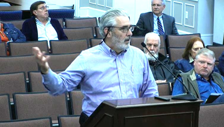 County Administrator Ed Daley, left, reminded the county board that their Harrisonburg-based County Attorney Jason Ham, right, was paid by the hour, including sitting and listening to reports unrelated to his work for the County while awaiting a re-positioned Closed Session at which he was needed for all three topics.
