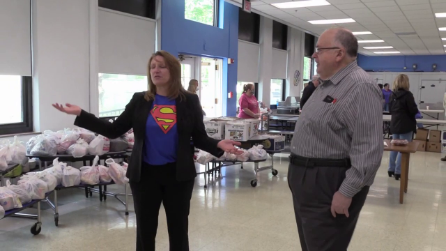 Sue Ann Fox, Food Service Director for Warren County Public Schools explains the meal distribution program to our publisher Mike McCool on the 8th Annual School Lunch Hero Day May 1, 2020.