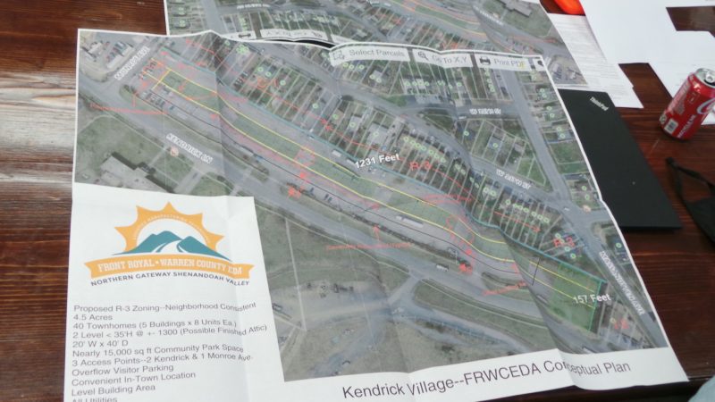 Browne noted a desire to get the County out from under the expense of supporting the EDA’s ownership of the properties, especially ones that are not currently revenue-producing. In a segue from that observation, Asset Committee Chairman Greg Harold presented a plan he has proposed to develop a 4.5-acre strip of land the EDA owns off Kendrick Lane between Monroe Avenue and the Front Royal Police Station and Massanutten Avenue.