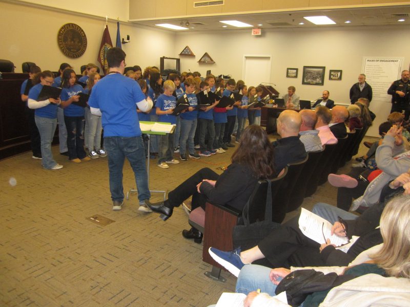 But before that all began, the E. Wilson Morrison Elementary School “Bobcat Chorus” performed three Christmas Seasonal songs to an overflow meeting room crowd of fans, many of whom left at the conclusion of the opening musical presentation.