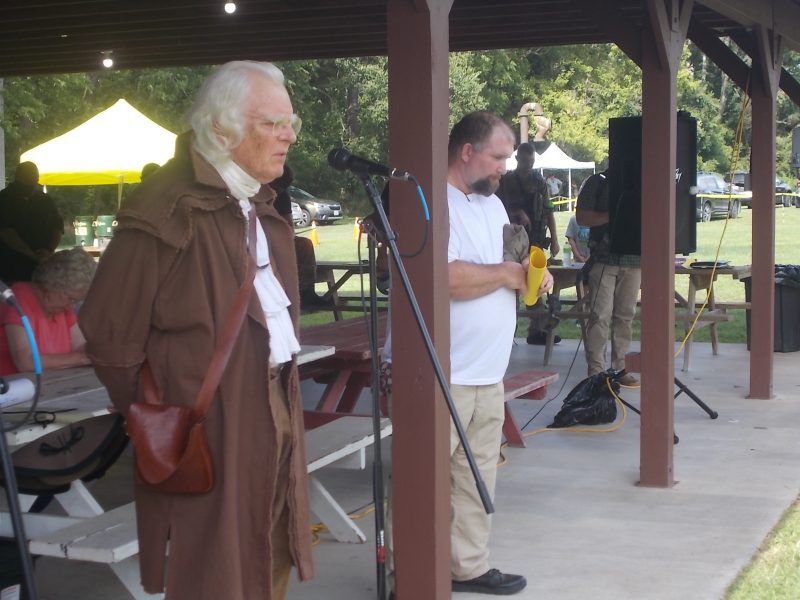 In addition to “Militia Muster” event organizer Sam Haun, speakers included American Revolutionary War “Liberty Man” Larry Johnson, period costumed as his fourth-generation great-grandfather Abel Johnston (there is a story behind that lost “T”), and Republican candidate for Virginia Attorney General, Chuck Smith.
