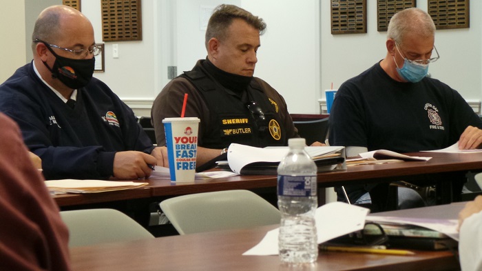 From left, County Fire Marshal Maiatico, Sheriff Butler and Chester Gap Chief Brown agree that it is important they be able to communicate, not only station to staff, but interdepartmentally. Royal Examiner Photos by Roger Bianchini – Royal Examiner Video by Mark Williams