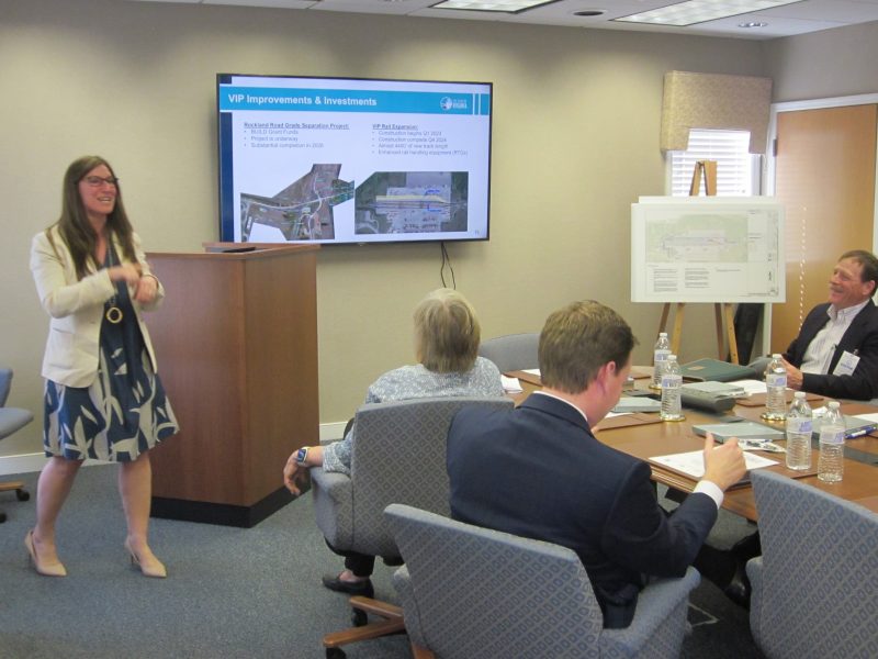 Opening the Virginia Port Authority presentation was VPA Director of Development and Transportation Policy Chris Gullickson, who introduced Public Affairs Officer Vick’s overview of Virginia Port Authority operations. She noted that VPA was recently rated “the most efficient port in North America” and maintains its ranking of 23rd globally. Vick added some humor to her favorable comparison of VPA operations to those found on the west coast during the recent global supply chain crisis. – “Not in Virginia,” she noted of what she called “the Virginia model” of port reception and distribution operations during the supply chain crisis.