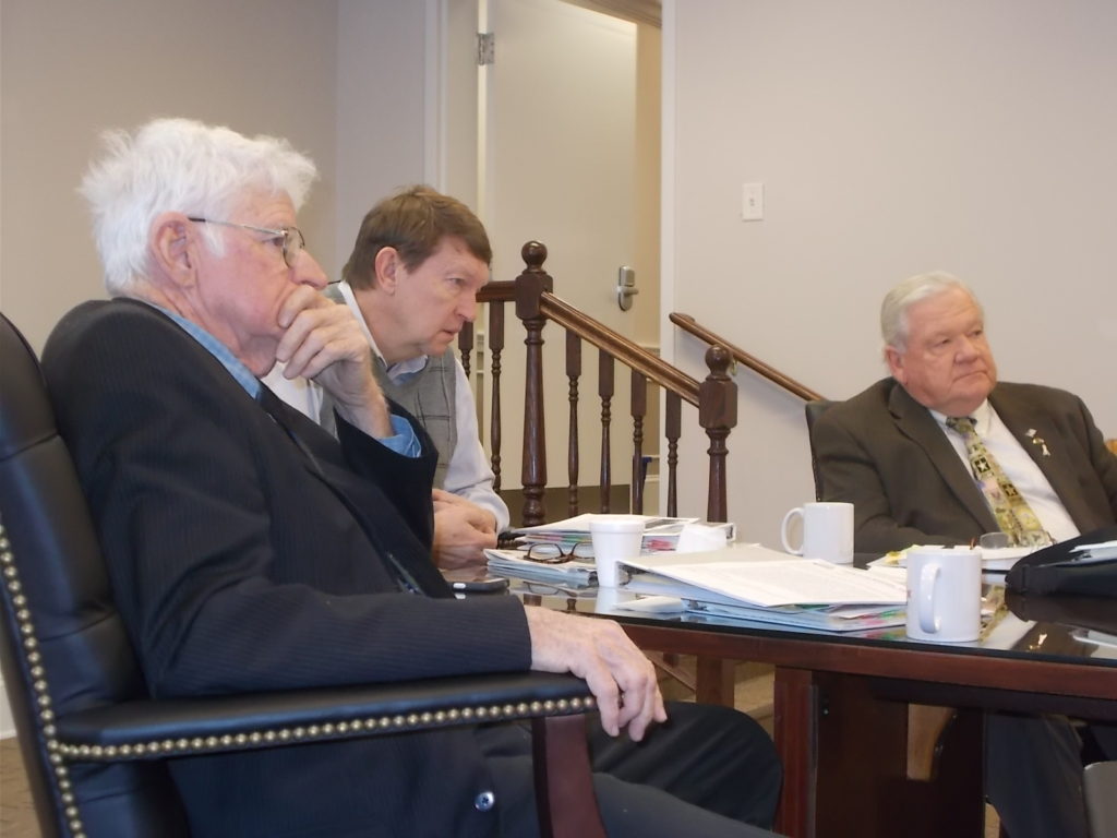 Tough crowd, tough job – above from left, Supervisors Fox, Carter and Murray listen intently as staff describes the dynamics of a projected $1.2-million revenue shortfall. Below, the county administrator and attorney may be thinking we didn’t do it … Photos/Roger Bianchini
