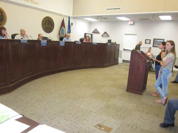 Homesteader reps Amber Martin, closest to camera, and Sarah Kerns, explained progress on creation of year-round Farmer’s Market proposal on a portion of the County-owned McKay Springs property in the county’s commercial north-side area.