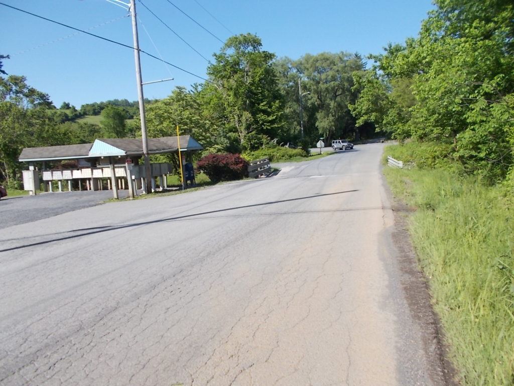 Lake Front Drive looking toward Rt. 522 – the mailboxes and parking area to left are part of the LFRPOA parcel where ROW of about 8/10’s of an acre was granted in late May.