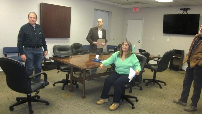 Three-and-a-half of the five supervisors, Cheryl Cullers was out of frame to the left and Richard Jamieson is partially pictured to the right, prepare to leave the Closed meeting caucus room shortly before the 7 p.m. start of the open meeting. Royal Examiner Photos Roger Bianchini
