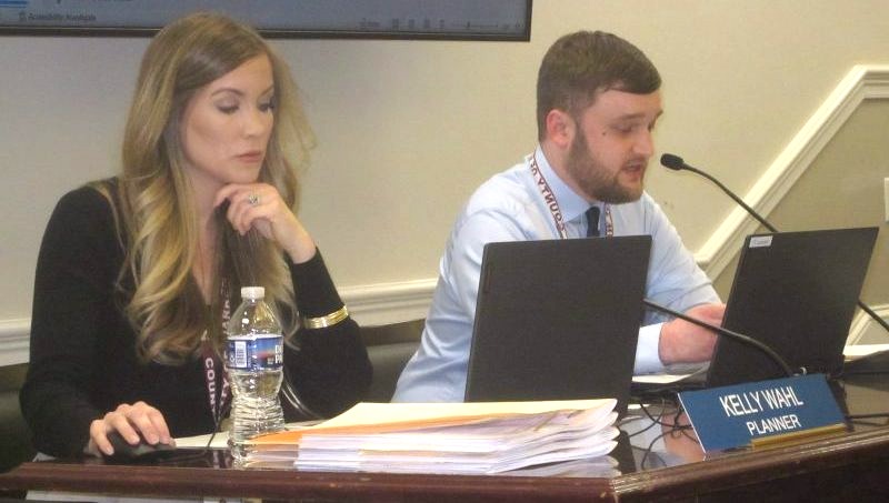 County Planner Kelly Wahl and Zoning Administrator Chase Lenz took turns on staff reports to the supervisors on pending actions, including code amendments designed to streamline CUP processes on expiration and renewal applications, which Lenz is addressing here.