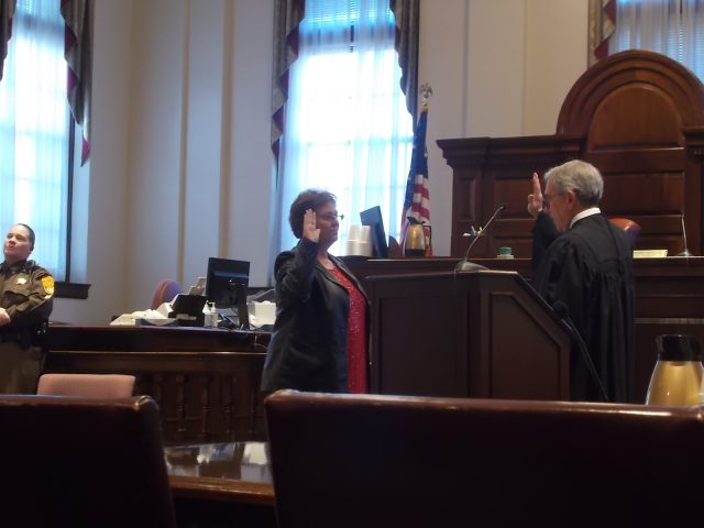 Friends and family members packed the courtroom; and all enjoyed a congratulatory cake and refreshments at a courthouse reception following the 4 p.m. swearing in ceremony.