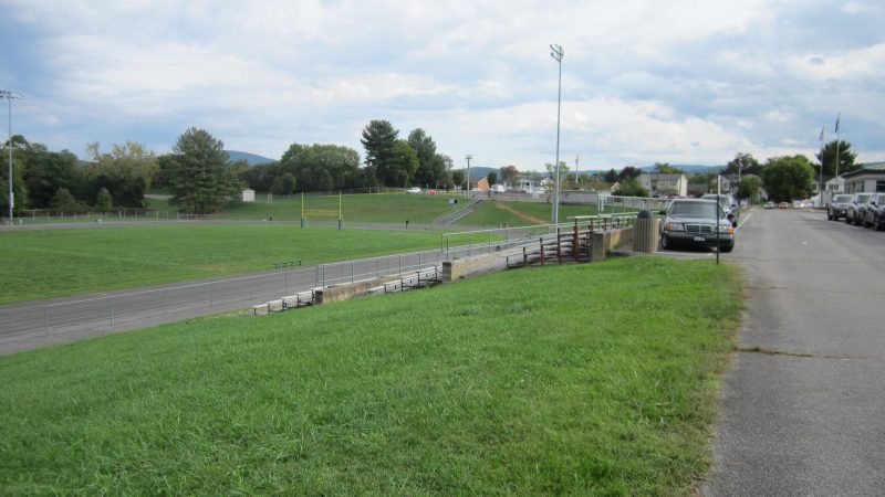 Looking north at the 15th St. Health & Human Services complex at the old middle school location with the football field and track to the right. Below, looking south toward the adjacent neighborhood, whose residents utilize the county area access, field, and track abutting the undeveloped property to the north. Royal Examiner Photos Roger Bianchini