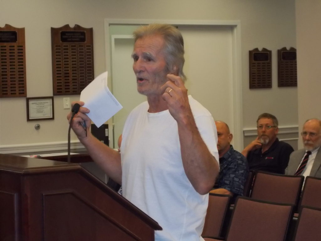 Wells R. Bill (no his name is not backwards) was colorful and insightful in suggesting that perhaps Rocky Lane is on the wrong secondary road list. He said residents polled believe paving without an expanded right of way is not a good idea. Photos/Roger Bianchini