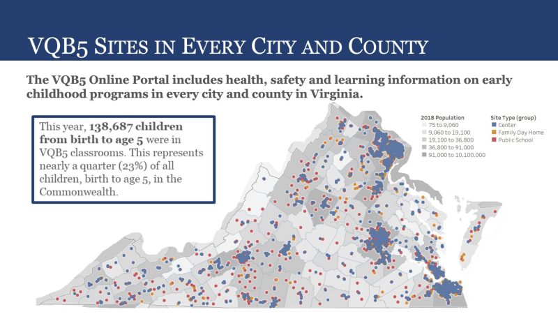 The profiles stem from the Unified Virginia Quality Birth to Five system, or VQB5, focused on improving children’s school readiness and expanding access to parents and support providers. The system is also a tool to help gauge the effectiveness of Virginia’s early childhood education programs.