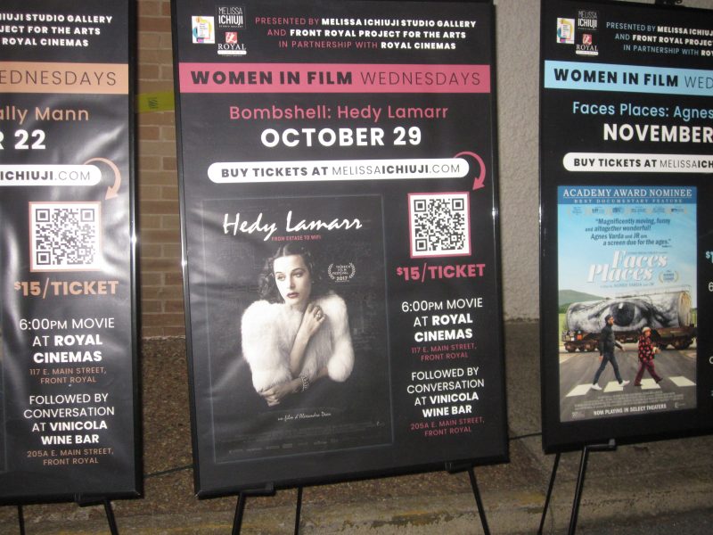 We asked artist, arts patron, and Gallery owner Ichiuji what’s coming in this ‘Daughter of the Stars’ celebration of the ‘Divine Feminine’. “Last night (Wed., Oct. 22) we had 85 attendees at our first Women in Film Wednesday series at Royal Cinemas! About 40 gathered afterwards to discuss the film (about Virginia photographer Sally Mann) at the new Vinicola wine bar just a few doors down. It was a huge success,” Ichiuji enthused before adding invites to this Sunday’s Art Talk and to Royal Cinema’s second Wednesday partnership film, “Bombshell” about actress Hedy Lamarr.