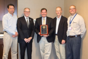 Del. Chris Collins, with Valley Health leaders and physicians after receiving VHHA’s Triple H Award Thursday. Left to right: David Harry, MD; Mark H. Merrill; Del. Chris Collins; Ronald Repasky, MD; Travis Clark.