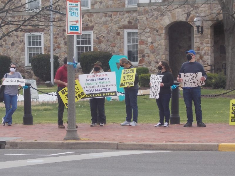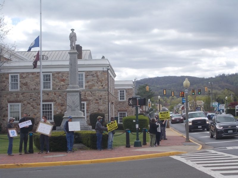 “As many know, this was the site of controversy last fall over the long-standing (placed 1911) Confederate Monument we have here, which nearly a quarter of the county actually voted to remove or replace to another location. And even though the statue still stands – it’s a great space to open this dialogue and talk about and reflect on our long history of oppression here in Virginia and in Warren County … and today we’re just out here opening the dialogue in a peaceful, positive and uplifting way, talking about valuing black lives and ending the violence.”