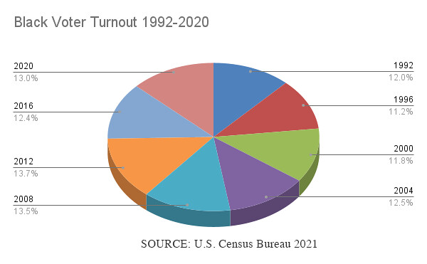 Voter turnout has always been lowest among those under 25, according to the data. But younger Black voters participated in high numbers in the 1960s, at the height of the Civil Rights Movement, and again in 2008, when they also participated in higher numbers than white voters of the same age.