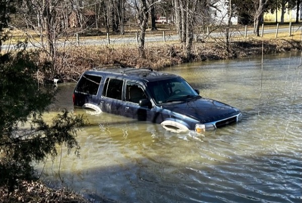 At approximately 11am today, the Frederick County Emergency Communications Center received a 9-1-1 call stating that a SUV had driven off the roadway and into a pond in the area of Papermill Rd. and Harrsion Ln. The caller stated the driver was still in the vehicle and was not moving.