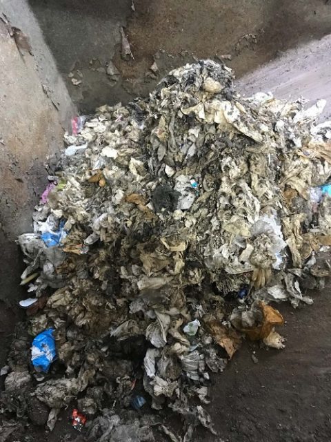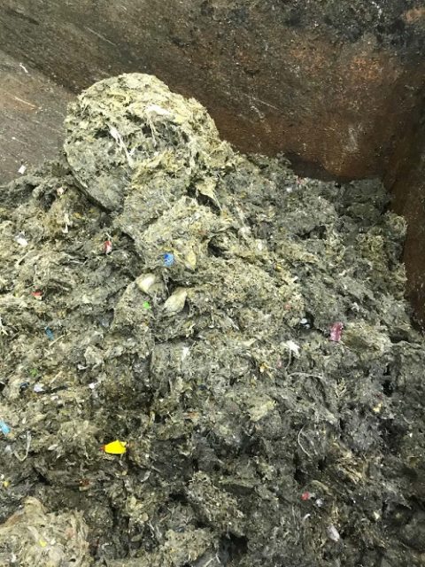 Images from the April 21, DEQ WWTP site visit and investigation of County complaint: above “Commingled screenings and grit” from the WWTP Raptor unit receiving and treating septage from county septic systems; below, “Screenings from the bar screen” at WWTP treating waste from the Town of Front Royal’s sewer system. They’re both acceptable at transfer station unless remoisturized the odor becomes too much of an issue on the receiving end. Photos Courtesy DEQ